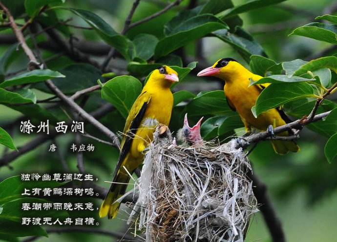 独怜幽草涧边生,上有黄鹂深树鸣。